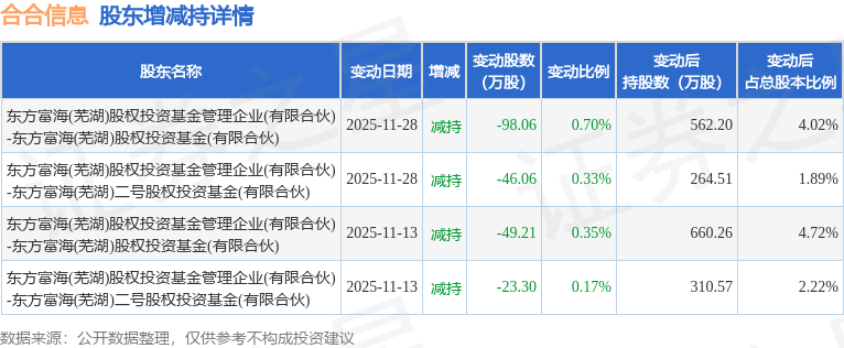 该股近半年内有股东持股变动,合计净减持216.64万股,股东增减持明细如下表: