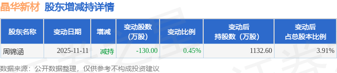 该股近半年内有股东持股变动,合计净减持130.0万股,股东增减持明细如下表: