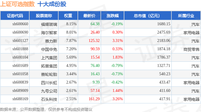 上证可选(000035)指数十大成份股详情如下: