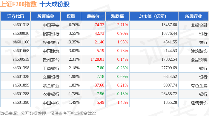 上证F200(000098)指数十大成份股详情如下: