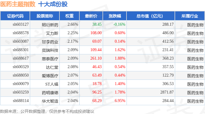 医药主题(000121)指数十大成份股详情如下: