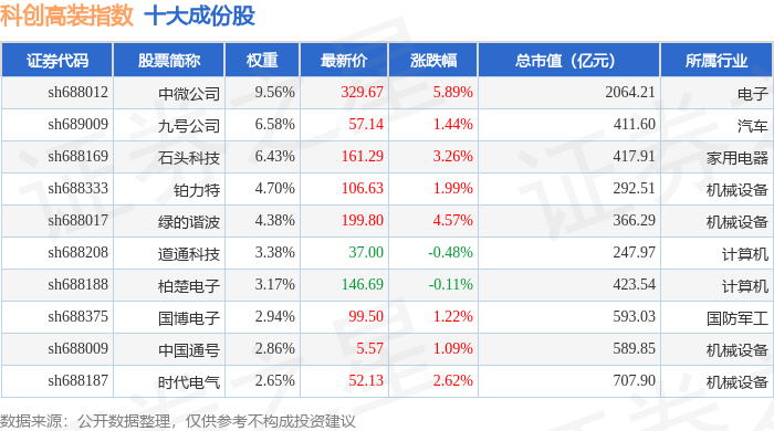 科创高装(000687)指数十大成份股详情如下: