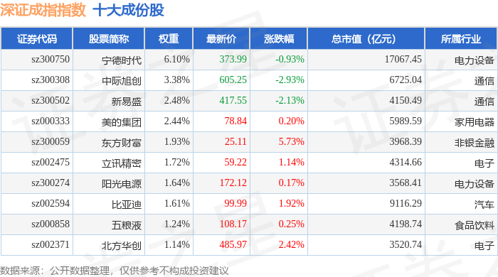 深证成指(399001)指数十大成份股详情如下: