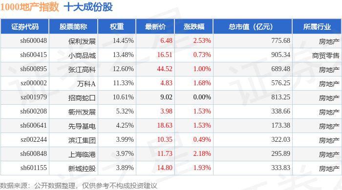 证券之星消息,1月6日,1000地产(399367)指数报收于2622.36点,涨1.35%,成交108.34亿元,换手率1.44%。当日该指数成份股中,上涨的有15家,保利发展以2.53%的涨幅领涨。
