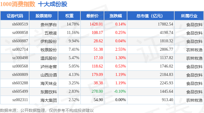 资金流向方面,1000消费(399385)指数成份股当日主力资金净流出合计1997.98万元,游资资金净流出合计445.01万元,散户资金净流入合计2442.98万元。成份股资金流向详情见下表: