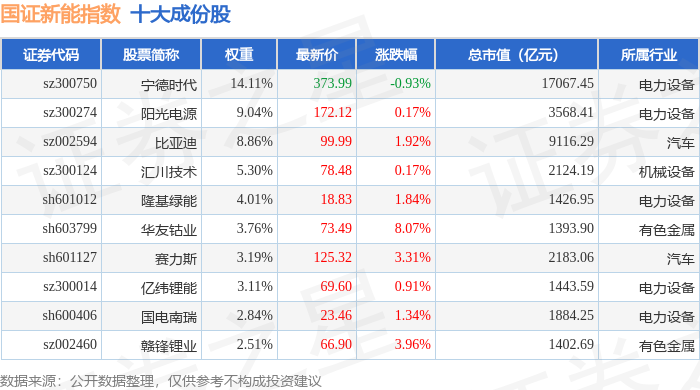 资金流向方面,国证新能(399412)指数成份股当日主力资金净流入合计10.07亿元,游资资金净流出合计8.91亿元,散户资金净流出合计1.17亿元。成份股资金流向详情见下表: