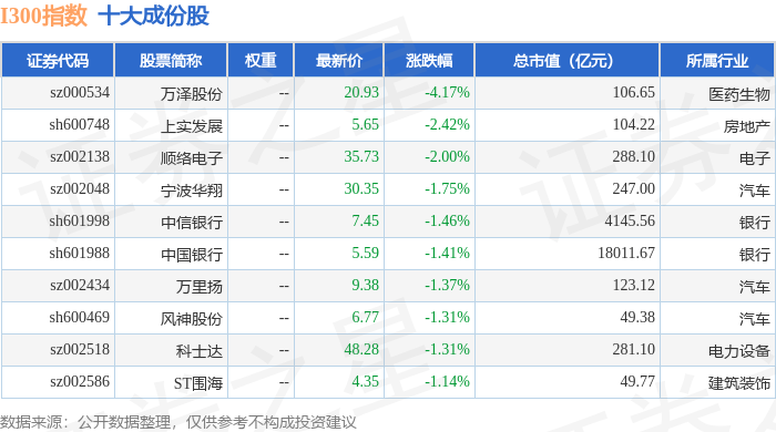 资金流向方面,I300(399416)指数成份股当日主力资金净流入合计15.61亿元,游资资金净流出合计7.24亿元,散户资金净流出合计8.37亿元。成份股资金流向详情见下表: