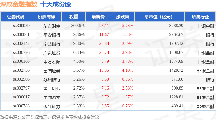 深成金融(399686)指数十大成份股详情如下:
