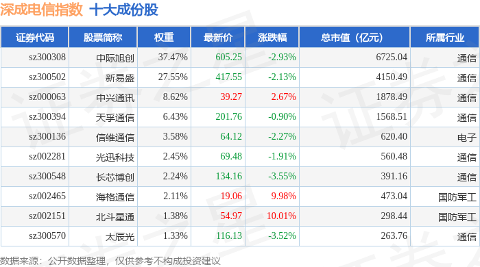 深成电信(399688)指数十大成份股详情如下: