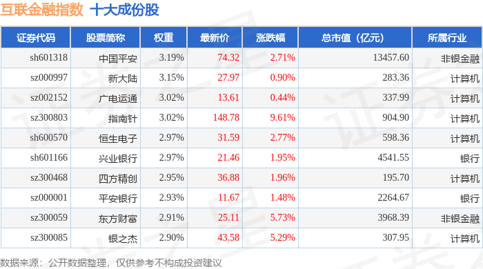 资金流向方面,互联金融(399805)指数成份股当日主力资金净流入合计71.44亿元,游资资金净流出合计32.9亿元,散户资金净流出合计38.37亿元。成份股资金流向详情见下表: