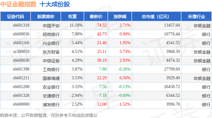 证券之星消息,1月6日,中证金融(399934)指数报收于6497.92点,涨2.15%,成交1523.35亿元,换手率0.71%。当日该指数成份股中,上涨的有85家,华林证券以9.99%的涨幅领涨,下跌的有13家,上海银行以1.68%的跌幅领跌。