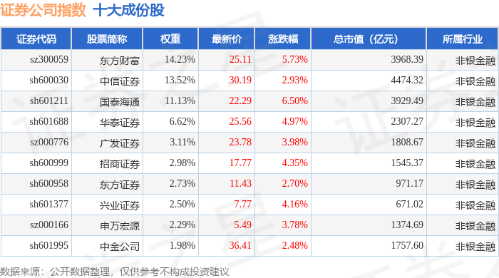 证券公司(399975)指数十大成份股详情如下: