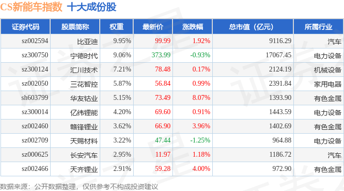资金流向方面,CS新能车(399976)指数成份股当日主力资金净流入合计4.41亿元,游资资金净流出合计3.13亿元,散户资金净流出合计1.07亿元。成份股资金流向详情见下表: