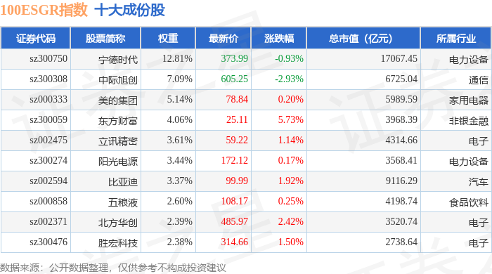 证券之星消息,1月6日,100ESGR(470027)指数报收于8437.92点,涨0.95%,成交2638.42亿元,换手率2.36%。当日该指数成份股中,上涨的有65家,中航西飞以10.0%的涨幅领涨,下跌的有13家,东山精密以3.74%的跌幅领跌。