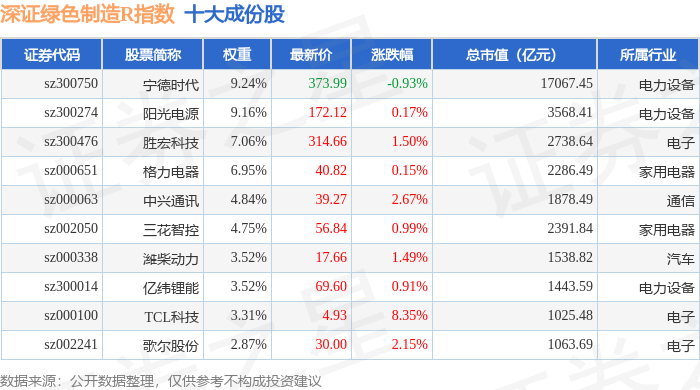 深证绿色制造R(470069)指数十大成份股详情如下: