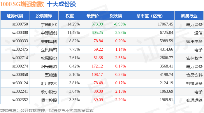 100ESG增强(970033)指数十大成份股详情如下: