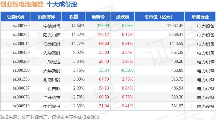 资金流向方面,创业板电池(970081)指数成份股当日主力资金净流出合计12.42亿元,游资资金净流入合计7.73亿元,散户资金净流入合计4.7亿元。成份股资金流向详情见下表: