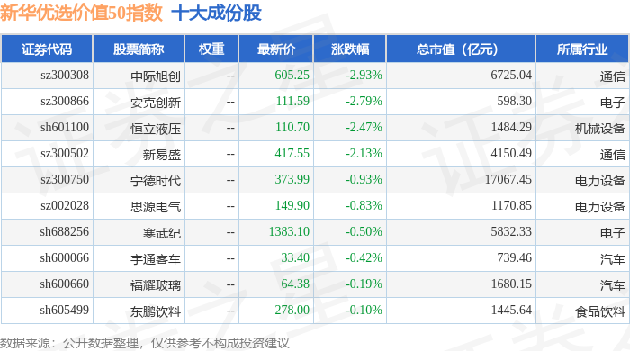 新华优选价值50(989004)指数十大成份股详情如下: