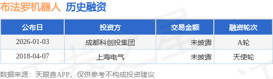 证券之星消息,根据天眼查APP于1月3日公布的信息整理,布法罗机器人科技(成都)有限公司A轮融资,融资额未披露,参与投资的机构包括成都科创投集团。