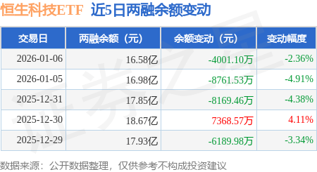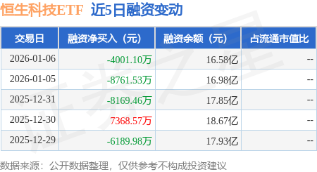 证券之星消息,1月6日,恒生科技ETF(513130)融资买入11.85亿元,融资偿还12.25亿元,融资净卖出4001.1万元,融资余额16.58亿元。