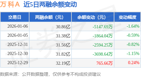 证券之星消息,1月6日,万 科A(000002)融资买入9087.33万元,融资偿还1.42亿元,融资净卖出5127.71万元,融资余额30.75亿元。