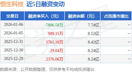 证券之星消息,1月6日,恒生科技(159740)融资买入2.67亿元,融资偿还3.45亿元,融资净卖出7806.58万元,融资余额7.74亿元,近20个交易日中有12个交易日出现融资净买入。