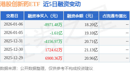 证券之星消息,1月6日,港股创新药ETF(513120)融资买入4.28亿元,融资偿还5.17亿元,融资净卖出8971.48万元,融资余额18.2亿元,近20个交易日中有11个交易日出现融资净买入。
