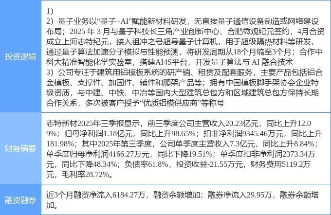 该股为量子计算,量子通信,有色金属概念热股,当日量子计算概念上涨1.88%,量子通信概念上涨1.24%,有色金属概念上涨0.88%。