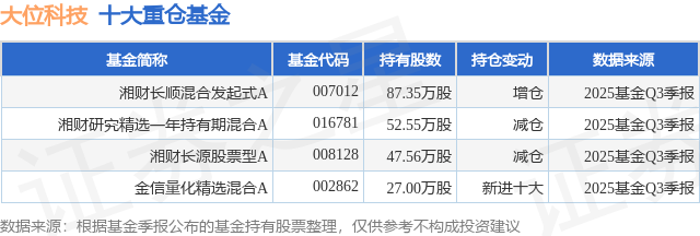 重仓大位科技的公募基金请见下表: