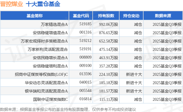 重仓晋控煤业的前十大公募基金请见下表: