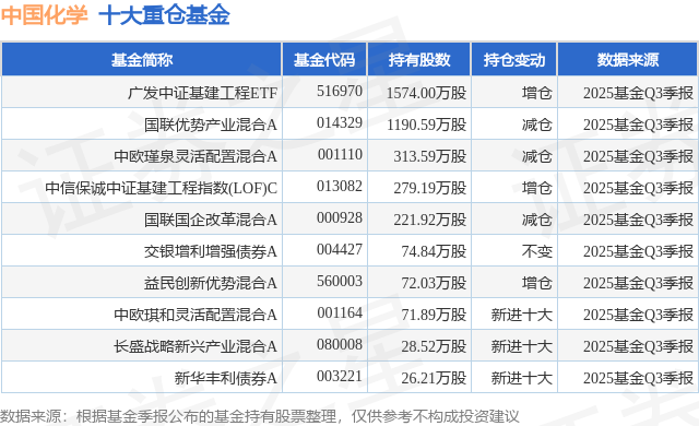 重仓中国化学的前十大公募基金请见下表: