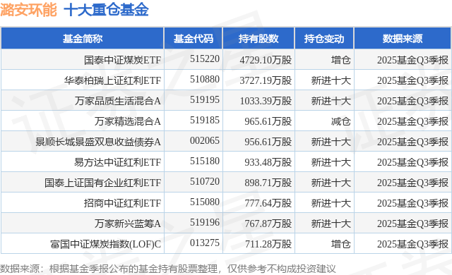 根据2025基金Q3季报公募基金重仓股数据,重仓该股的公募基金共53家,其中持有数量最多的公募基金为国泰基金的国泰中证煤炭ETF。国泰中证煤炭ETF目前规模为114.13亿元,最新净值1.0517(1月6日),较上一交易日上涨1.79%,近一年下跌0.53%。该公募基金现任基金经理为吴中昊。吴中昊在任的基金产品包括:国泰中证500指数增强A,管理时间为2022年1月28日至今,期间收益率为33.26%;国泰中证内地运输主题ETF,管理时间为2022年11月30日至今,期间收益率为-2.3%;国泰沪深300指数增强A,管理时间为2022年12月30日至今,期间收益率为21.28%;国泰国证新能源汽车指数C,管理时间为2022年12月30日至今,期间收益率为18.5%。