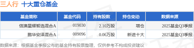 重仓三人行的公募基金请见下表:
