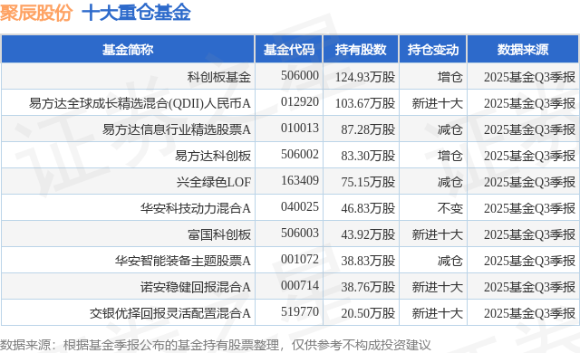 重仓聚辰股份的前十大公募基金请见下表: