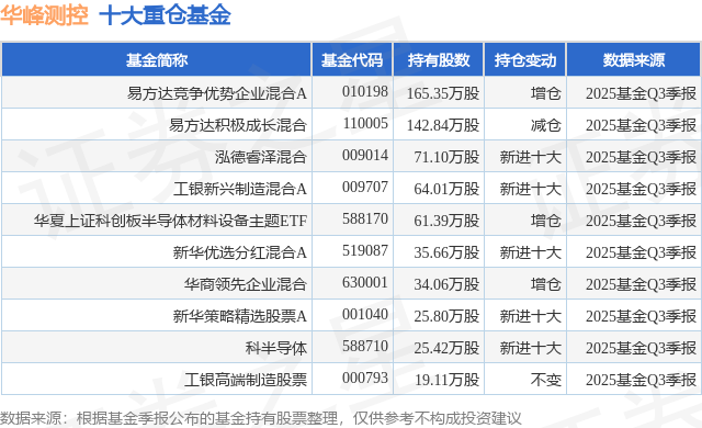 根据2025基金Q3季报公募基金重仓股数据,重仓该股的公募基金共40家,其中持有数量最多的公募基金为易方达基金的易方达竞争优势企业混合A。易方达竞争优势企业混合A目前规模为74.36亿元,最新净值0.599(1月6日),较上一交易日上涨1.42%,近一年上涨31.19%。该公募基金现任基金经理为郭杰 何崇恺。郭杰在任的基金产品包括:易方达国企改革混合,管理时间为2017年8月23日至今,期间收益率为133.8%;易方达ESG责任投资股票,管理时间为2019年9月2日至今,期间收益率为63.66%;易方达核心优势股票A,管理时间为2021年1月28日至今,期间收益率为-26.1%;易方达商业模式优选混合A,管理时间为2021年8月3日至今,期间收益率为-6.03%。何崇恺在任的基金产品包括:易方达国防军工混合A,管理时间为2019年11月28日至今,期间收益率为129.18%;易方达积极成长混合,管理时间为2021年5月29日至今,期间收益率为39.12%;