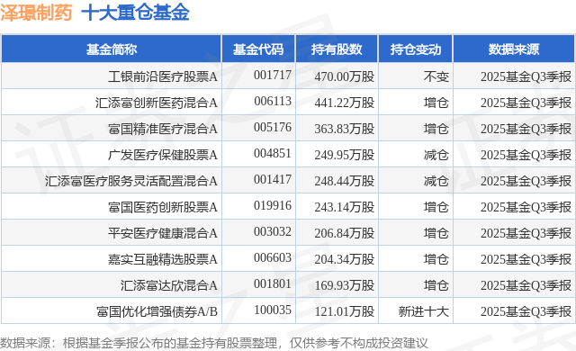 重仓泽璟制药的前十大公募基金请见下表: