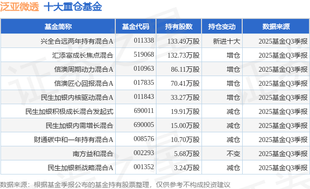 重仓泛亚微透的前十大公募基金请见下表: