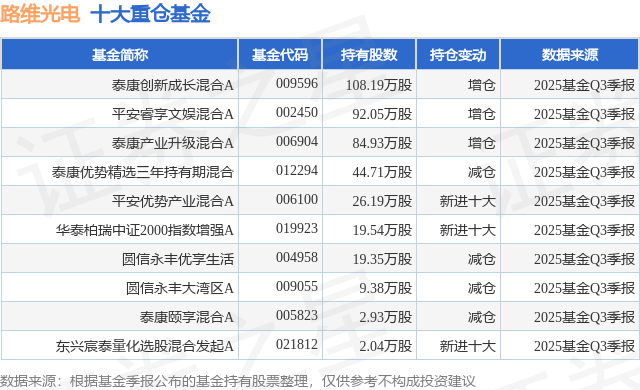 根据2025基金Q3季报公募基金重仓股数据,重仓该股的公募基金共11家,其中持有数量最多的公募基金为泰康基金的泰康创新成长混合A。泰康创新成长混合A目前规模为8.12亿元,最新净值1.3475(1月6日),较上一交易日上涨0.9%,近一年上涨59.24%。该公募基金现任基金经理为薛小波。薛小波在任的基金产品包括:泰康产业升级混合A,管理时间为2019年5月17日至今,期间收益率为176.49%;泰康优势精选三年持有期混合,管理时间为2021年8月31日至今,期间收益率为19.32%。