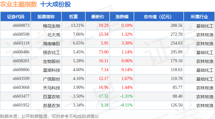 农业主题(000122)指数十大成份股详情如下: