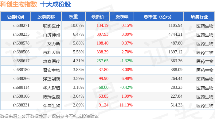 科创生物(000683)指数十大成份股详情如下: