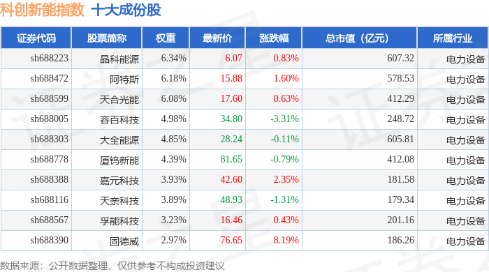 科创新能(000692)指数十大成份股详情如下: