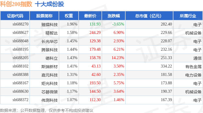 科创200(000699)指数十大成份股详情如下: