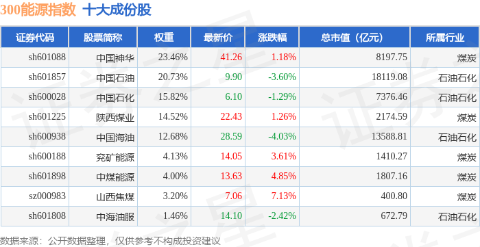 证券之星消息,1月7日,300能源(000908)指数报收于2370.97点,跌0.42%,成交123.32亿元,换手率0.29%。当日该指数成份股中,上涨的有5家,山西焦煤以7.13%的涨幅领涨,下跌的有4家,中国海油以4.03%的跌幅领跌。