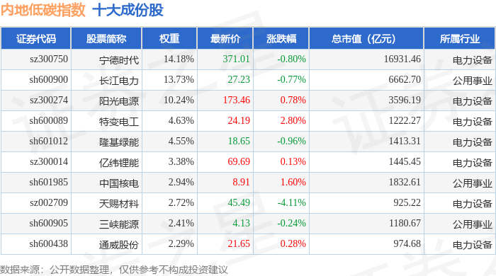 内地低碳(000977)指数十大成份股详情如下: