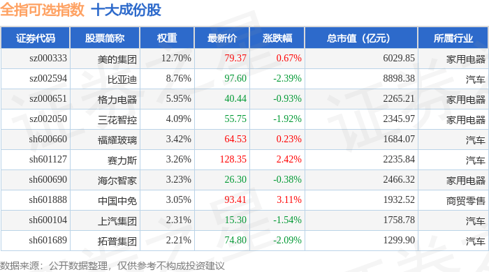 资金流向方面,全指可选(000989)指数成份股当日主力资金净流出合计52.69亿元,游资资金净流入合计3.43亿元,散户资金净流入合计49.26亿元。成份股资金流向详情见下表: