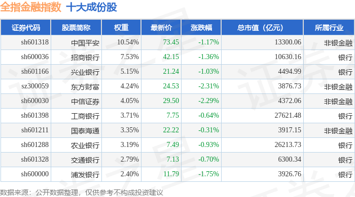 全指金融(000992)指数十大成份股详情如下: