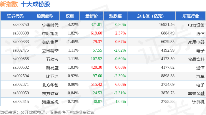 新指数(399100)十大成份股详情如下: