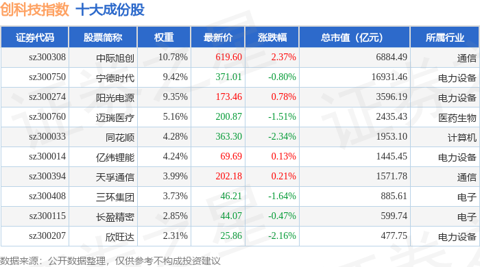 创科技(399276)指数十大成份股详情如下: