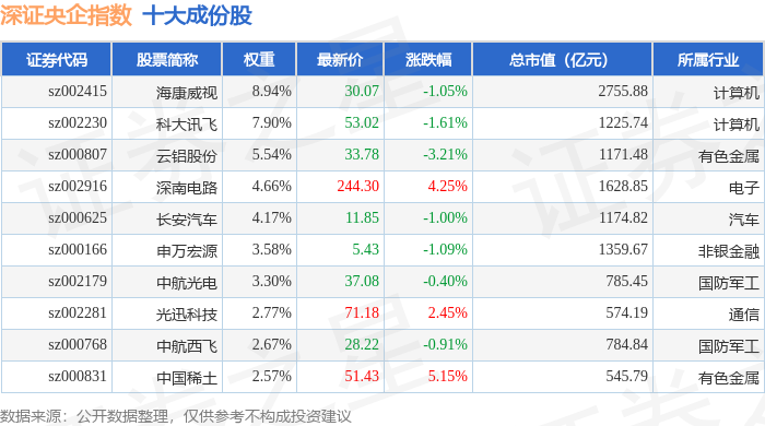 证券之星消息,1月7日,深证央企(399335)指数报收于4457.91点,跌0.26%,成交643.83亿元,换手率1.39%。当日该指数成份股中,上涨的有14家,中瓷电子以10.0%的涨幅领涨,下跌的有35家,云铝股份以3.21%的跌幅领跌。