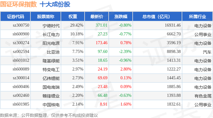 国证环保(399358)指数十大成份股详情如下: